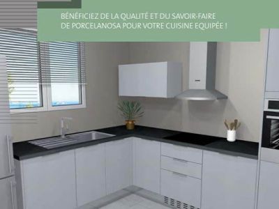 Une cuisine moderne et fonctionnelle. Prenez possession de votre cuisine conçue selon un rapport qualité/prix au plus juste. Nos partenaires, Porcelanosa® et Whirlpool, ont sélectionné pour Maisons Sésame les mobiliers et équipements électroménager les plus appropriés.