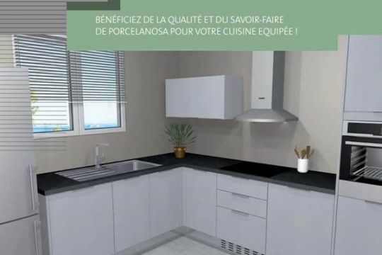 Une cuisine moderne et fonctionnelle. Prenez possession de votre cuisine conçue selon un rapport qualité/prix au plus juste. Nos partenaires, Porcelanosa® et Whirlpool, ont sélectionné pour Maisons Sésame les mobiliers et équipements électroménager les plus appropriés.